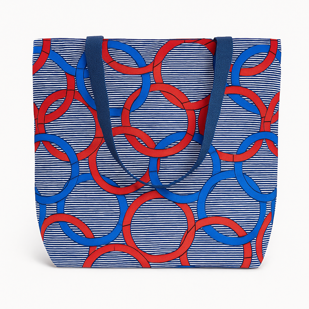 Sac wax doublé bleu marine et blanc à cercles rouges et bleus - Tote bag max